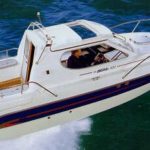 Быстроходный каютный круизный катер. Благодаря последним технологиям у катера полностью новый дизайн корпуса. Результат — прекрасные ходовые качества, признанные сегодня во всем мире. В просторной каюте есть 5 сидений для пассажиров и 2 спальных места. Обеденная зона преобразуется в спальное место для взрослого. Сдвижная дверь в кокпит. Туалет с септик-баком под кормовым сиденьем. Большой люк в передней каюте.