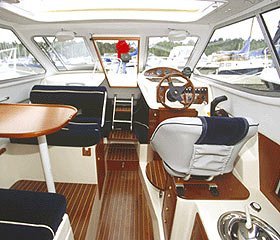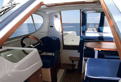 На этом быстроходном каютном круизном катере можно поехать куда угодно! Благодаря последним технологиям у катера полностью новый дизайн корпуса. Сдвижная дверь, выход в носовой кокпит – и вы легко перемещаетесь вокруг каюты при причаливании. В просторной каюте — сиденья для 5 пассажиров. Три спальных места (одно из них конвертируется из обеденной зоны). Туалет с септик-баком. Кухонное отделение: раковина и плита/обогреватель.