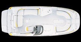 Обычные характеристики придают катерам типа deck boat (открытая передняя палуба, закругленный нос) необычный вид. Вот эти черты: Легкий доступ к носовому кокпиту. Полная отделка стеклопластиком. Съемный ковер. Sony Stereo/CD плеер. Закрывающийся ящик-бардачок. Плавательная платформа (опция).