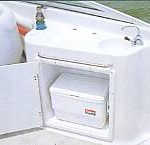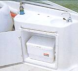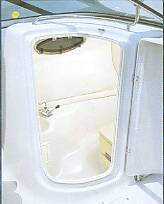 Это очень продвинутая модель. Уверенно шагните с берега на плавательную платформу (опция), пройдите через удобный проход на транце. Закройте среднюю секцию ветрового стекла от нежелательного сквозняка при движении катера. Разместите напитки, продукты и грузы…. в кулере, в полу, в местах для хранения по всему катеру. Есть даже отдельная туалетная комната с раковиной, туалетом и иллюминатором – большая редкость для катеров данного модельного ряда.