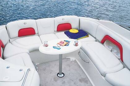 Качественные материалы, комфорт и уют во всем. Столик в кокпите, бар, встроенный и переносные кулеры, система подачи воды, туалетное отделение с раковиной и переносным туалетом. И другие опции.