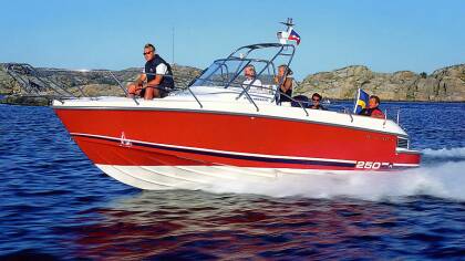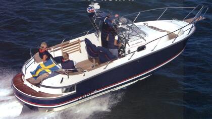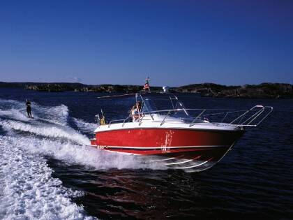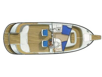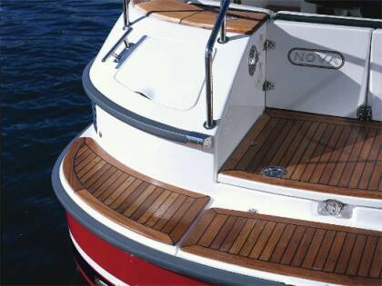 В стандартной комплектации: интерьер с отделкой полированным тиком, туалет, флагшток, держатели удочек, душ на транце, ручная и автоматическая донные помпы, компас, стол в кокпите, ковер в каюте, крюк для водных лыж.