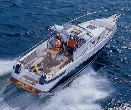 Се-сертификат, одобренный Национальной Морской администрацией Швеции. Крюк для водных лыж. Нержавеющая лестница на плавательной платформе. Деревянный флагшток. Набор инструментов. Международные огни навигации. Фирменная полоса переменных ватерлиний. Держатели удочек из нержавеющей стали. Руководство по эксплуатации для владельца.