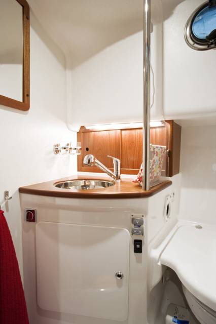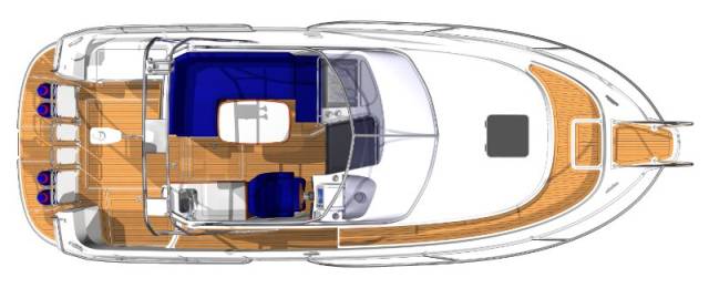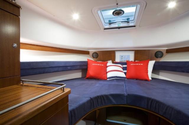 Палубное пространство и салон находятся на одном уровне с плавательной платформой. Машинное отделение сделано по возможности малым. Под палубой имеется просторное место для хранения крупногабаритного груза, например надувной лодки и пр.Кокпит 30 Nova соответствует размеру катера, и в хорошую погоду там хорошо разместится вся семья. Двухместный диван с одной стороны, сиденье рулевого с другой, откидной диван, как в 280 и 320 Coupé, 3 человека сидят по ходу движения, 6 человек могут сесть вокруг стола в салоне. Камбуз с плитой или духовкой, кухонные шкафчики служат удобному путешествию на борту.Внутри лодки внизу расположены 4 кровати – 2 в носу и 2 в гостевой дополнительной каюте. Дополнительное спальное место – диван в кокпите. Отличный туалет WC находится рядом с душевой кабиной. Умывальник со шкафчиками отделен поворотной дверью.Боковые протопчины также практичны. По правому борту – это проход мимо каюты, достаточно широкий, как раз для капитанов «большого размера». На палубе имеются релинги, расположенные не в ущерб пространству, на удобной и безопасной высоте.