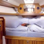 Носовая каюта высотой в полный рост; двойная кровать; рундуки под кроватью; просторный платяной шкаф и буфет; съемный ковер; зеркало; картина с морским мотивом; крючки для одежды; галогенные светильники; верхний люк и боковые люки со шторками;