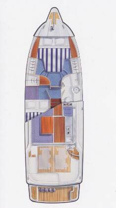Кокпит: Самоотливной. Люки в машинное отделение с отделкой из тика. Держатели кранцев. Релинги из нержавеющей стали. Дверь на плавательную платформу. Место для хранения по правому борту. Полированный столик из тика.